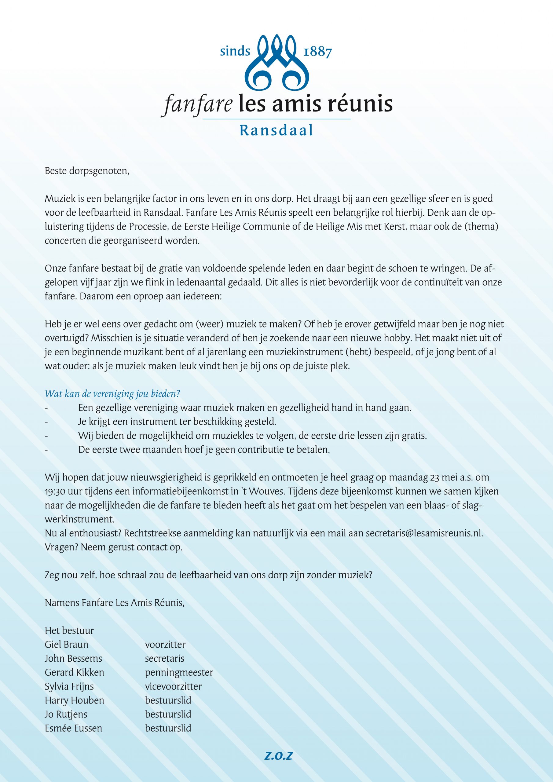 Aansluitend tot 17.00 uur muziek van de Ransdorf Muzikanten.